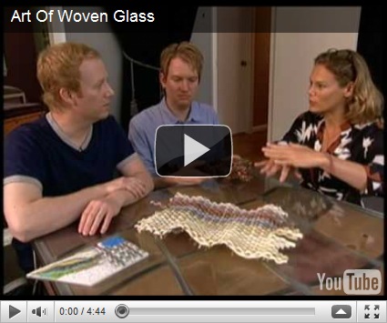 imageNo pictures of the latest dyed yarns, but today will be spent finishing up on the piece that’s on the loom. Gee, how long has it been since I’ve done any weaving? Then the yarns will need to be balled up. I always like to do that in front of mindless TV, since balling yarns is such a mindless activity. Along with that, I’m working on a couple of designs based on the colors in the painting of the previous post. These samples come from using Color Schemer to pick colors from a photo. They have color schemes already developed by others—wonder what kind of design would develop from using one of the preplanned schemes?imageI saw an ad for the Haven Gallery on the back cover of American Style magazine that caught my attention. The gallery is touting kimonos and woven glass in the ad, although it’s over by now. Below is a YouTube video via CBS about the process. It’s pretty interesting. In fact, I think I’ve watched it before, but it’s still interesting. Of course, they don’t reveal their secret for weaving glass!